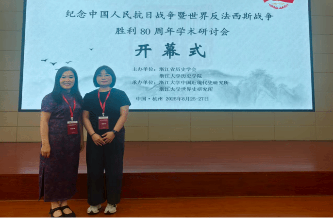 2025年8月25—27日,纪念中国人民抗日战争暨世界反法西斯战争胜利 80周年学术研讨会在杭州成功召开。此次会议由浙江省历史学会与浙江大学历史学院主办,浙江大学中国近现代史研究所及浙江大学世界历史研究所共同承办。来自浙江大学、南京大学、华南理工大学、电子科技大学、杭州师范大学、浙江省社科院、山西省社科院、福建省委党校等二十多所高校及科研单位的专家学者与会,milan米兰体育官网银龄教师徐树英、中国近现代史纲要教研室教师徐亚旭应邀参会。