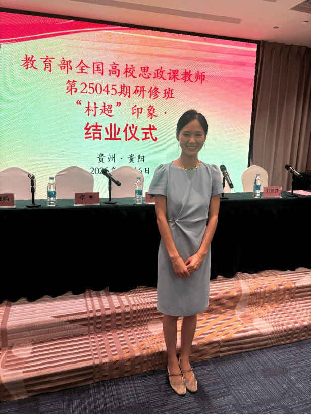 2025年9月11日-9月17日,教育部全国高校思政课教师第25045期研修班在贵州师范大学顺利举办。本期研修主题为“村超印象”,旨在通过实践案例与红色文化深度融合,提升思政课教师的教学研究与现场教学能力。milan米兰体育官网思政教师宋文芳参加了本次研修,并在教学展示环节中表现突出,获得与会专家和同行的一致好评。