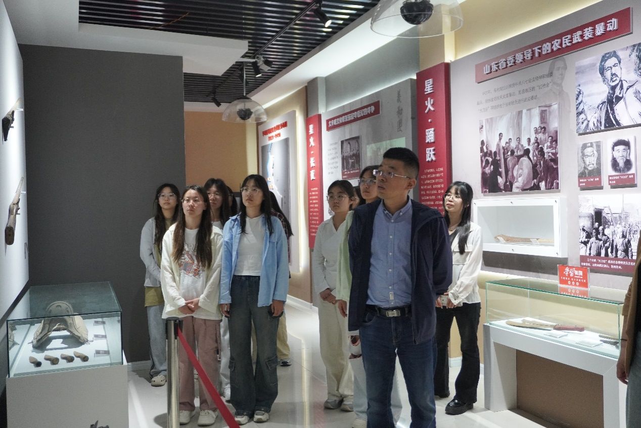 师生走进大沽河革命历史展览馆,通过专业讲解与文物史料、沉浸式影像技术的结合,同学们将课堂理论与革命史实深度联结,直观感受党的百年奋斗历程,进一步增强对红色文化的认同感与历史责任感。学生们纷纷表示,这种“文物说话、历史发声”的实践课堂,让教科书中的理论变得可知可感,更坚定了传承红色基因、担当时代使命的责任意识。