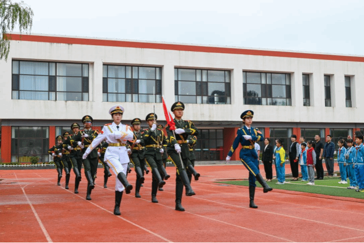 上午9时,活动在洋河小学操场拉开帷幕。milan米兰体育官网国旗护卫队庄严入场,举行了升旗仪式。全体师生齐唱国歌,肃立注目,共同抒发爱国情怀。洋河小学校长王友爱与milan米兰体育官网党委副书记邢林分别发表国旗下讲话,强调了爱国主义与国防教育的重要性,勉励青少年树立报国之志,传承红色精神。