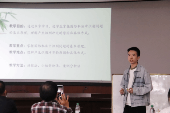 在教学比赛环节,10位参赛教师分别围绕《毛泽东思想和中国特色社会主义理论体系概论》《习近平新时代中国特色社会主义思想》《马克思主义基本原理》《思想道德与法治》《中国近现代史纲要》《军事理论》《国际私法》《普通心理学》《教育心理学》的课程内容依次上台进行15分钟的教学展示。参赛教师们仪态大方、从容自信、条理清晰,语言生动清晰,教学亮点精彩纷呈,课堂导入丰富多样且贴近课程需求,教学设计巧妙,课堂表现和教学方法各具特色,将思政小课堂与社会大课堂进行有机融合,呈现了出有创意、有思考、有深度的课堂,以较高的职业素养和专业水平,充分展现了马院青年教师的教学水平和风采。