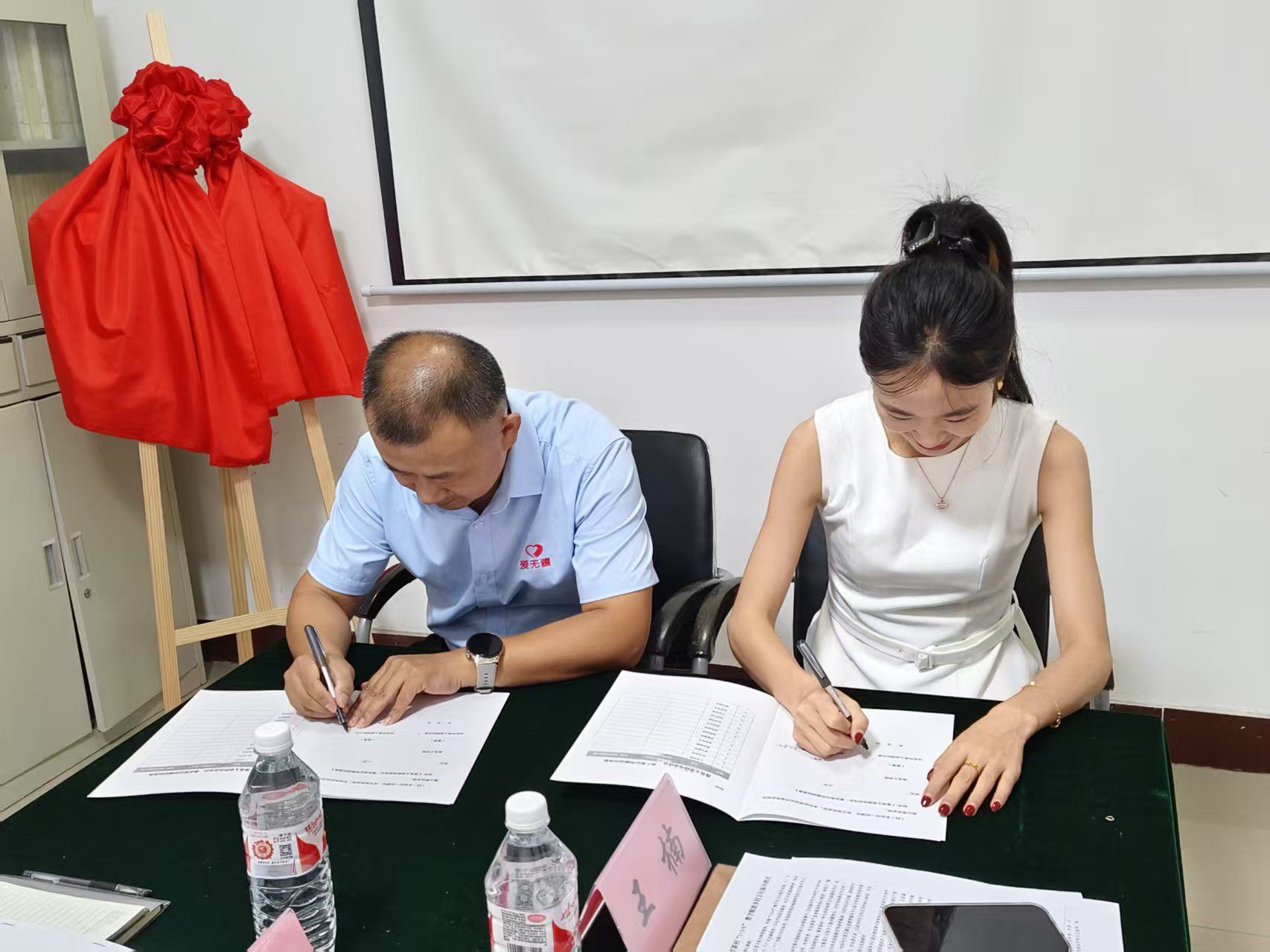 在双方代表的共同见证下,宋文芳与孙松签署《实习实践基地共建协议》,并为 “milan米兰体育官网实习实践基地”揭牌。红绸落下的瞬间,标志着双方在人才培养、社会服务、乡村振兴等领域的合作进入实质性阶段。宋文芳表示:“基地的建立将推动社会工作专业‘理论教学—实践实训—社会服务’三位一体育人体系的完善,让学生在基层实践中锤炼服务乡村的本领。” 孙松则表示:“爱无疆将充分发挥本土公益机构在社区治理、乡村服务中的经验优势,与校方共同打造‘接地气’的实践课堂。”