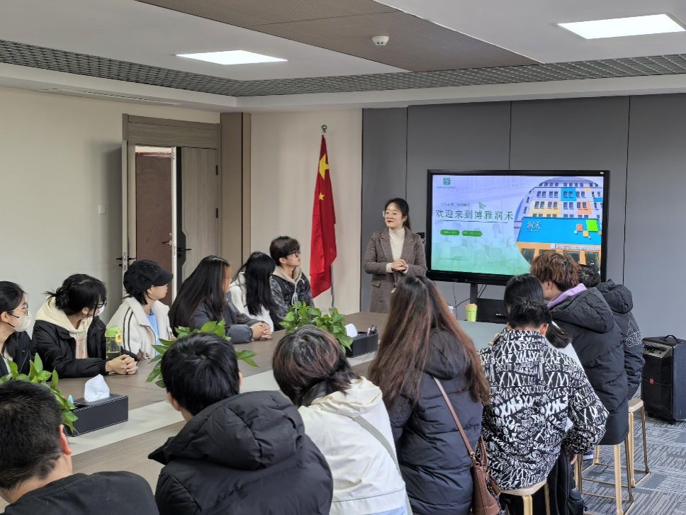 学生们依次参观了中心的各个场所,包括儿童活动区、康复训练室、心理咨询室等。每到一处,崔校长都耐心地向学生们介绍该区域的功能、设施以及日常使用情况,让学生们对特殊儿童的生活和学习环境有了更加直观的认识。除此之外,学生们还参观了博雅集团下属的幼儿园和小学,感受到园区的教育理念和幼儿教育的魅力所在,为儿童社会工作的学习打下坚实基础。